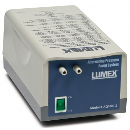 Incluye bomba de aire alternante de presión fija. La bomba compacta puede ser montada en la piecera de la cama con su sujetador incorporado.
